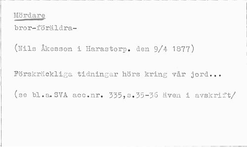 //// Mördare bror-föräldra- //// (Uils Åkesson i Harastorp. den 9/4 1877) //// Förskräckliga tidningar hörs kring vår jord... (se bl.a. SVA aec.nr, 335,s.35-3S även i avskrift/ ////