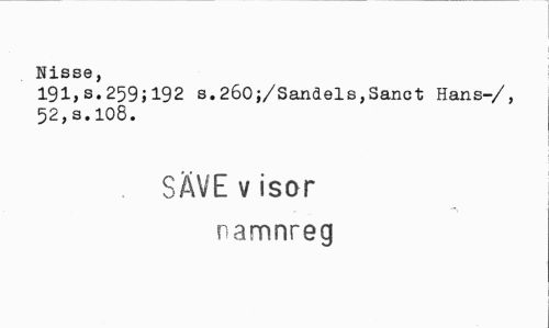//// Nisse, //// 191,s.259>192 s.260;/Sandels,Sanct Hans-/, 52,s.108. //// SÄVE v isor namnreg ////