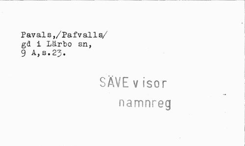 //// Pavals,/Pafvalls/ gd i Lärbo sn, 9 A, s. 23. //// SÅVE v isor namnreg ////