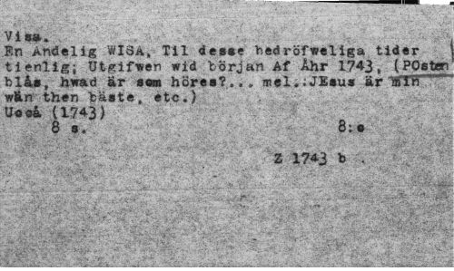 //// Vi.. //// En Andelig WI3A, Til desse bedröfweliga tider tienlig; Utgifwen wid början Af Åhr 1743, (POefren blå», hwad är som höres?..» mel.;JE«us är afTrT" wän then bäste, etc.) Uooå (1743) //// 8 s. 81+ //// Z 17*3 b • //// "• .. ¦' ¦ ¦ Ml-Q* //// f ' • ' k ¦ ¦¦¦ - '¦<¦;'-/-. -rS--*': ¦ //// '.Äjf '-¦ k--i - <,'*:¦¦ -1* ' "- .V; vy HK ' 33? ////
