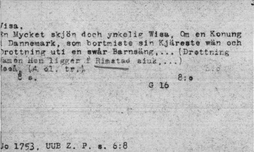 //// fl sa, //// En Mycket skjön doch ynkelig Wiaa, On en Konung . Bannemark, som bortmiate ain Kjareate wän och brottning uti en awår Barnaäng,.,. (Drottning //// ära än ilen "1 i gger aiuk,. . .) //// 'ooå.^ LA <6.1. tr ,'f. — ; . c //// V 6. 8;o //// G 16 //// Jo 1753. vub Z. P. a. 6:8 ////