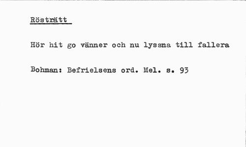 //// Rösträtt //// Hör hit go vänner och nu lyssna till fallera Bohmans Befrielsens ord. Mel. s. 93 ////