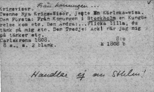 //// 4rig«vi«or. ... * //// Twenne Nya Krjgs-Wiaor, je^ite In Kärleks-wl aa. //// Pwret»; Prå* Kofiungen i Stookhoia er, Kungörelse kea etc . Ber.' Andra: . ..^Tic^aTTilla, du tänk på mig etc. Ben Tredje: Acki när jag mig . på tar.ker etc. //// Carl skrina IÖ03, 8:0 //// 8 2 "blank. i iö08 b ////