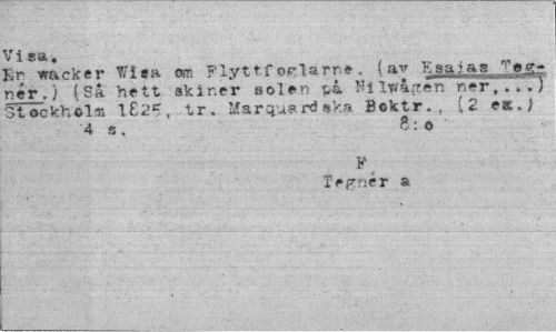 //// Visa. //// fcr wacker tfita om Plytt.f »clarre. (av K^asJ^-ner.) (Sa hett akir.er solen Hiluajten ner,...} Stöckholm 182^, tr. Marqusrd »ka Boktr. , {2 fKj 4 s. ft:o //// K //// Teprnér a ////