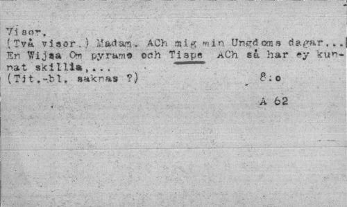 //// Visor, //// f Två vi 9or . ) i! ad am. 4Ch mig min Ungd oms da gar , .. En Wijsa O* pyramo och Tiape ACh sa har ey kunnat akillia,... "" (Ti t. -.M. sakras ?) , //// A 62 ////
