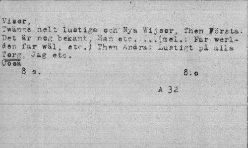 //// Visor, //// Twänne helt lustige och Uya Wij aor, Then f örsta. Det är T) or, "bekant, Mar. etc. , ..('»el.: Far verlden far wäl, etc.) Then Andra: Lustigt på alla Tor^, etc. //// 'Jtfaä //// 8 a . 8; o //// A 32 ////