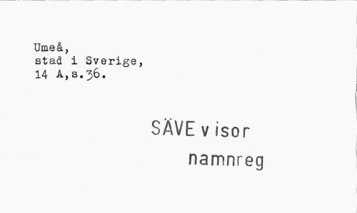 //// Umeå, //// stad i Sverige, 14 A,s.36. //// SÄVE v isor namnreg ////