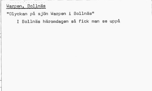 //// Warpen. Bollnäs //// "Olyckan på sjön Warpen i Bollnäs" //// I Bollnäs häromdagen så fick man se uppå ////