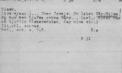 //// " ~ " V - - w- //// Visor. i //// {tr* visor.)... Th en Tredge: En Liter; T4r-Wij sa. Si hur den Tjufwa gröna Wtfcr. .. (mel.: nar //// på liaflig Blomsterplan. Jag mina etr.) //// T i t.-ti. saknas. //// T» ef, , -rid. s . 7 - 5 . 8; o //// B 31 ////