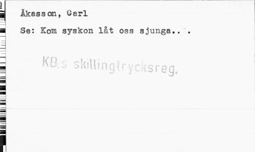 //// i Äkassotn, Garl //// i Se: Kom syskon låt oss sjunga.. . //// 3 KD:s skillingtrycksreg. ////