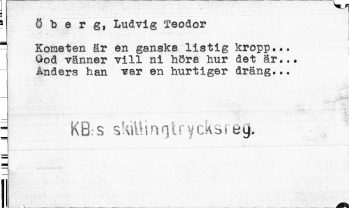 //// Öberg, Ludvig Teodor //// B Kometen är en ganska listig kropp... God vänner vill ni böra bur det är... Anders han irar en hurtiger dräng... //// : KB.s skiUinrjtrycksrij. //// i ////