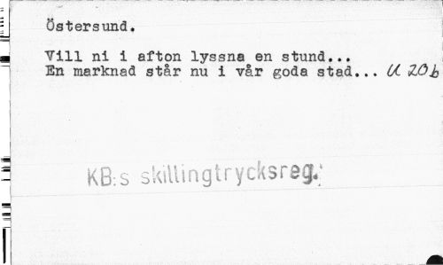 //// Östersund. //// - //// ¦ Vill ni i afton lyssna en stund... //// En marknad står nu i vår goda stad... (a zöjz //// | //// . //// i k8:s skiUingtrycksreg.; f ////