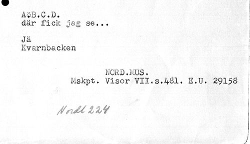 //// där fick jag se... //// t //// i //// ! //// tJ C3. ! //// Kvarnbacken ^ //// ( //// NCRD.MUS. //// hskpt. Visor VII.s.4^1. E.U. 29156 //// I //// / ////