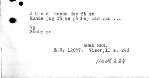 //// A b c d kunde ja^ få se //// Kunde jag få se på dej min vän ... //// Yg //// Skeby sn //// NORD MUS. //// E.U. 12067. Visor,II s. 293 ////