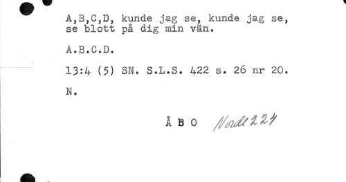 //// Kunae jag se, Kunae jag se, //// se blott på dig min vän. //// A.B.C.D. //// 13:4 (5) SN. S.L.S. 422 s. 26 nr 20. //// N. //// t //// ÅBO ////