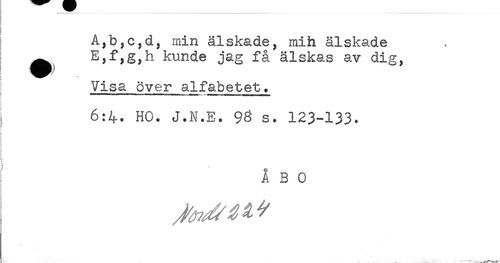 //// A,b,c,d, min älskade, mih älskade //// ^ E,f,g,h kunde jag få älskas av dig, //// Visa över alfabetet. //// ! //// 6:4. HO. J.N.E. 98 s. 123-133* //// i //// j //// ! //// 1 //// ÅBO ////