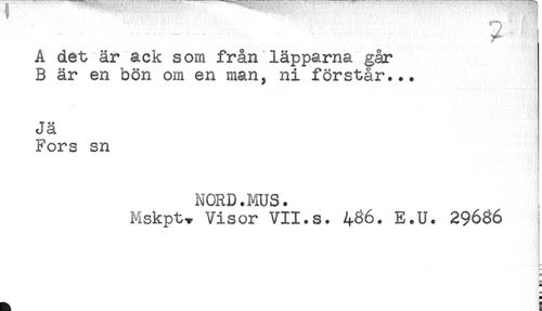 //// A det är ack som från läpparna går //// B är en bön om en man, ni förstår... //// Jä //// Fors sn //// NORD.MUS. //// Mskpt, Visor VII.s. 466. E.U. 29636 //// H //// < //// ^ E ////