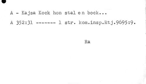 //// A - Kajsa Kock hon stal en bock... //// i //// } //// A 352:31 ---- 1 str. kom.insp.Rtj.9695:9. //// < //// i //// Ra //// 1 ////