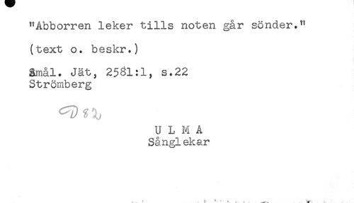 //// "Abborren leker tills noten går sönder.*' //// (text o. beskr.) //// gmål. Jät, 2531:1, s.22 //// Strömberg //// U L M A //// Sånglekar //// ^ . ' ^ ** ' i - -i ^ ////