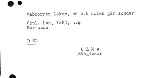 //// "Abborren leker, så att noten går sönder" //// Gotl. Lau, 1360, s.4 //// Karlsson //// D 32 //// ) //// U L K A //// Sånglekar ////