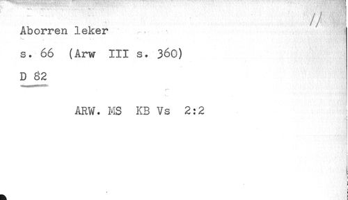 //// // //// Aborren leker ^. j //// ^ , L ' ' //// s. 66 (Arw III s. 360) //// D 82 //// ARW. MS KB Vs 2:2 //// i //// ! //// * ////