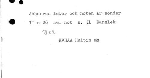 //// Abborren leker och noten är sönder //// < //// ): //// ^ II s 26 mel not s. 31 Danslek //// DsT, //// KVHAÅ Hultin ms //// i ////