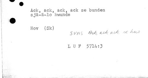 //// ' Ack, ack, ack, ack se bunden //// j sjä-ä-lo hwunde //// ! Hov (Sk) //// L U F 5714:3 //// t //// ! //// 1 //// t ////
