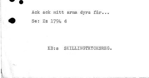 //// ] //// Ack ack mitt arma dyra får... //// ^ Se: Zz 1794 d //// i //// < //// KB:s SKILLINGTRYCKSREG. //// 1 //// ' //// < - i.Ti.nr.iit ////