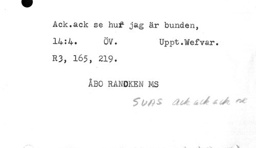 //// Ack.ack se huf- jag är bunden, //// 14:4. ÖV. Uppt.Wefvar. //// R3, 165, 219. //// ÅBO RANDKEN MS ////