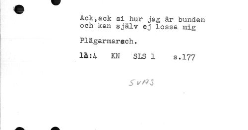 //// Ack,ack si hur jag är bunden //// och kan själv ej lossa mig //// I //// Plägarmarech. //// 1&:4 KN SLS 1 s.177 //// * //// i //// i. - //// ! ////