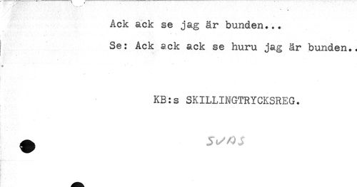 //// Ack ack se jag är bunden... //// * * //// Se: Ack ack ack se huru jag är bunden., //// KB:s SKILLINGTRYCKSREG. ////