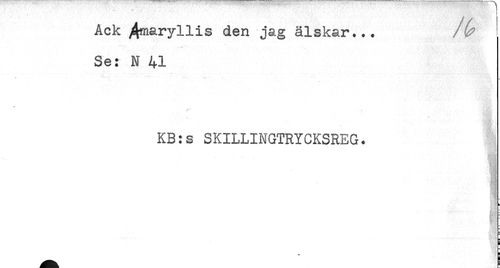 //// Ack Amaryllis den jag älskar... //// Se: N 41 //// . * i //// KB:s SKILLINGTRYCKSREG. //// Hs* //// * //// - //// i //// < ////