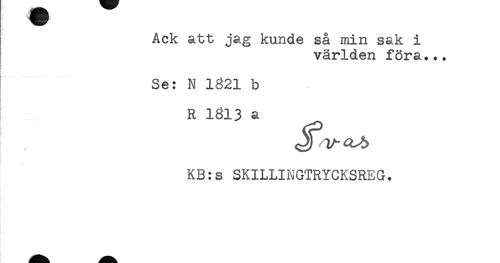 //// Ack att jag kunde så min sak i //// världen föra... //// t* //// t //// Se: N 1821 b //// R 1813 a //// KB:s SKILLINGTRYCKSREG. ////