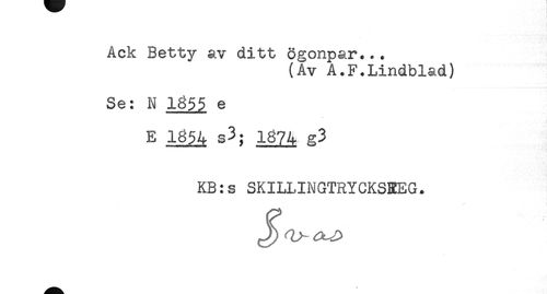 //// Ack Betty av ditt ögonpar... //// (Av A.F.Lindblad) //// Se: N 1855 e //// E 1854 s3; 1824; g3 //// KB:s SKILLINGTRYCKS3EG. ////