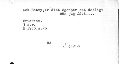 //// Ack Betty,av ditt ögonpar ett dödligt //// sår jag fått.... //// Frieriet. //// 3 str. //// B 59:6,3.26 //// RA //// O ^^s ////