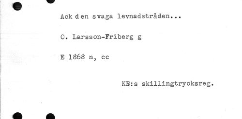 //// Ack d en svaga levnadstråden... //// - //// - //// 0. Larsson-Friberg g //// E 1363 n, cc //// )- * ' . * //// f . //// KB:s skillingtrycksreg. ////
