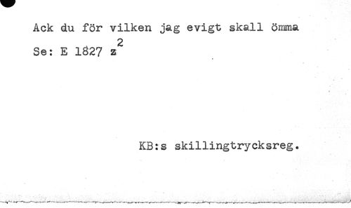 //// Ack du för vilken jag evigt skall ömma //// Se: E 1827 z //// * //// * //// KB:s skillingtrycksreg. ////