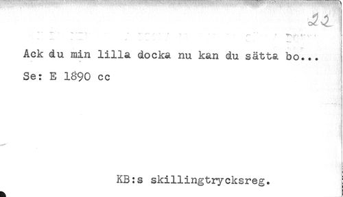 //// - r. - < r //// *** "* ...-' . v //// Ack du min lilla docka nu kan du sätta bo... //// t //// Se: E 1^90 cc //// - //// KB:s skillingtrycksreg. ////