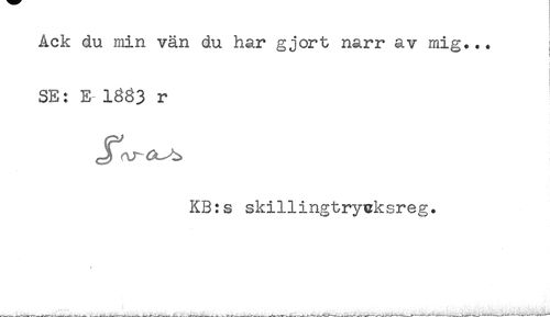 //// Ack du min vän du har gjort narr av mig... //// < //// SE: E-1383 r //// KB:s skillingtrycksreg. ////