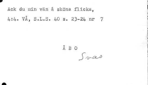 //// Ack du mm van a skona ilicka, //// 4:4. VÅ, S.L.S. 40 s. 23-24 nr 7 ' //// ÅBO //// { ////