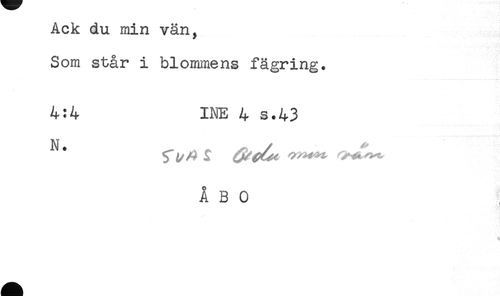 //// ACK au min van, //// Som står i blommens fägring. //// 4:4 INE 4 s.43 //// N. / //// S ^^^ //// ÅBO ////