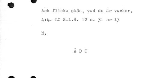 //// Ack flicka skön, vad du är vacker, //// 4:4. LO S.L.S. 12 s. 31 nr 13 //// N. //// ÅBO ////