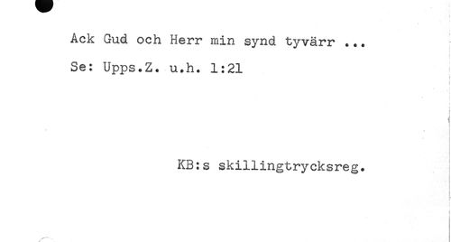 //// Ack Gud och Herr min synd tyvärr ... //// f //// Se: Upps.Z. u.h. 1:21 //// t //// t //// KB:s skillingtrycksreg. //// i //// t //// ; ////