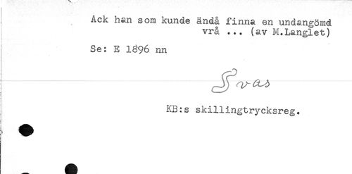 //// Ack han som kunde ändå finna en undangömd //// vrå ... (av M.Langlet) //// Se: E 1696 nn //// * //// KB:s skillingtrycksreg. ////