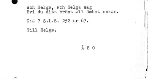 //// AUii nej. g,, mc JLg,s<. o<<a.g, ; //// Hvi du ditt bröst all ömhet nekar. //// 9:4 ? S.L.S. 252 nr 67. //// Till Helga. //// ÅBO //// ' 1 ////