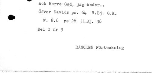 //// t //// Öfver Davids ps. 64 H.Bj. G.K. //// ^ W. g.6 ps 26 H.Bj. 36 //// Del I nr Q //// RANCKEN Förteckning ////