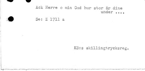 //// Ack herre o mm Gud hur stor är dine //// under .... //// Se: Z 1711 a //// j //// -v //// ). //// KB:s skillingtrycksreg. //// i ////
