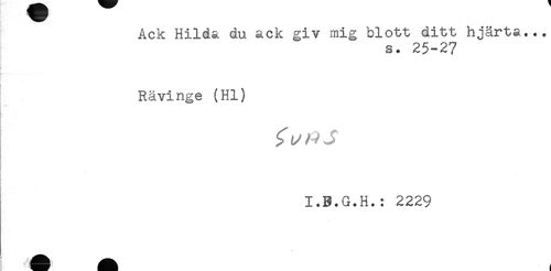 //// Ack Hilda du ack giv mig blott ditt hjärta... //// s. 25-27 //// . //// ^..... .... //// Rävinge (Hl) //// ! //// ! //// i //// t //// } //// t //// I.B.G.H.: 2229 ////
