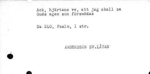 //// Ack, hjärtans ve, att jag skall se //// Guds egen son försmädas //// Da 240, Psalm, 1 str. //// * //// ANDERSSON SV.LÅTAR ////