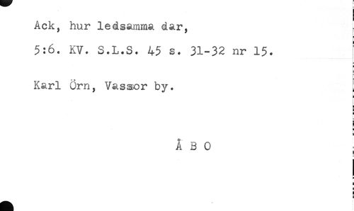 //// Ack, hur ledsamma dar, . //// 5:6. KV. S.L.S. 45 s. 31-32 nr 15. : //// [ //// f //// Karl örn, Vassar by. [ //// i //// r //// h //// c //// a //// i //// < //// ] //// ÅBO //// B //// * //// H //// 5 //// } //// 5 ////